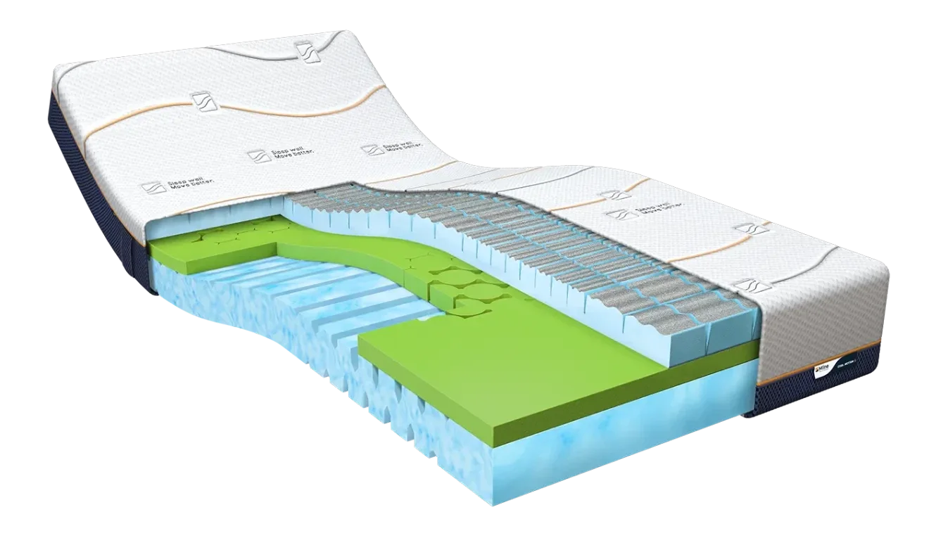 De insnijdingen in de toplaag van de Cool Motion 3 ondersteunen je lichaam op de best mogelijke manier. De unieke Clima Support laag tussen de kern en de toplaag zorgt voor een optimale ventilatie, waarbij de insnijdingen in deze laag zorgen voor beter spierherstel.
